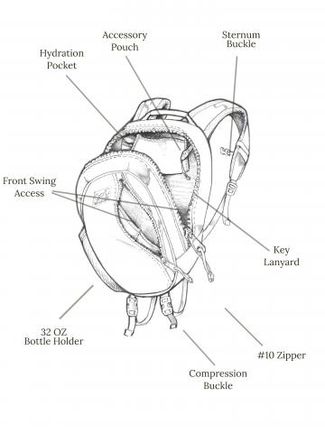 Features: Durable Hemp, 2L Bladder pouch compatible